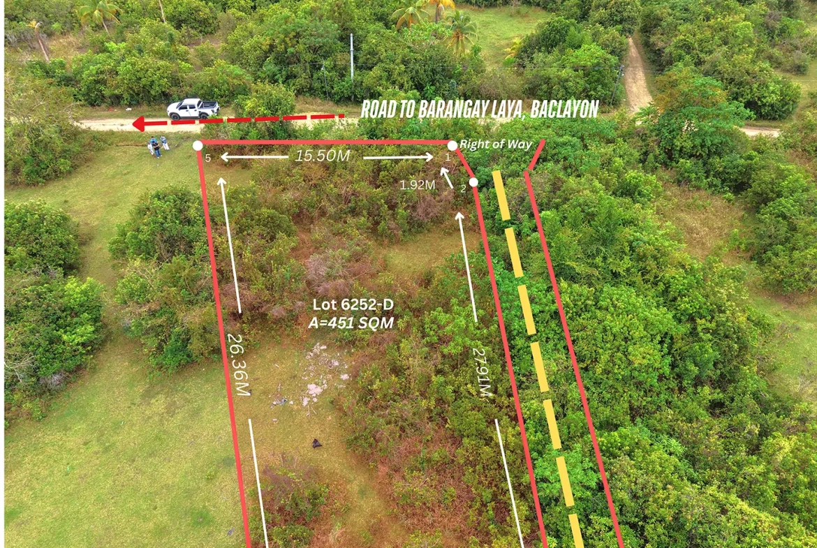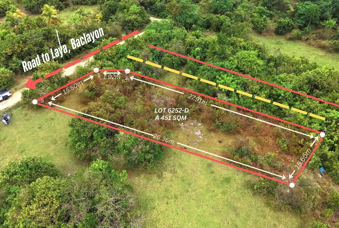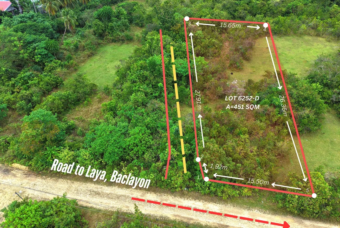 Secure a lot located along the barangay road in the peaceful area of Laya, Baclayon, Bohol. The property is level and ready for development, making it ideal for building your dream home or vacation house.